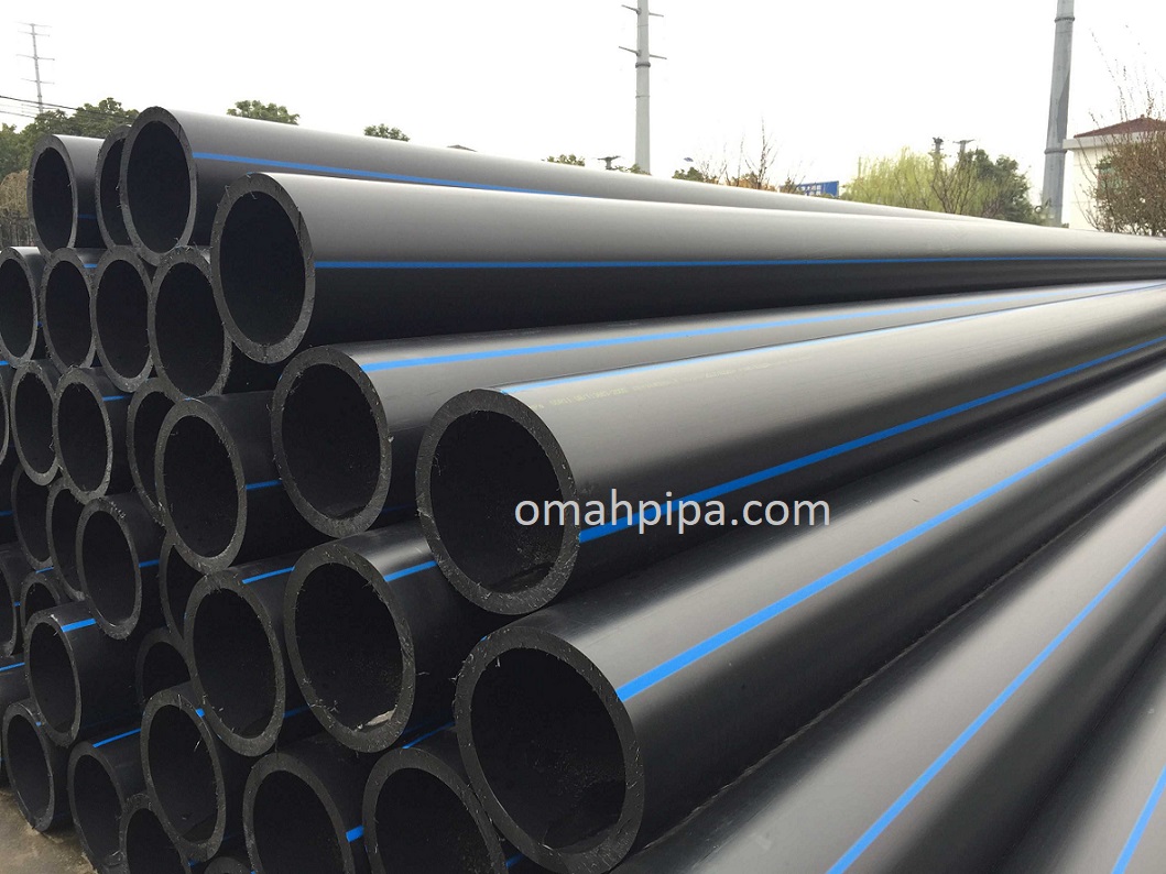 - Warna pipa HDPE hitam dengan garis strip biru